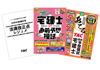 直前期は高い的中実績を誇るTAC出版の直前対策書籍とその年の本試験に必要な最新の改正点をまとめた解説集「法律改正点レジュメ」で、独学では不足しがちな法律改正情報や最新試験対策をフォローします!
